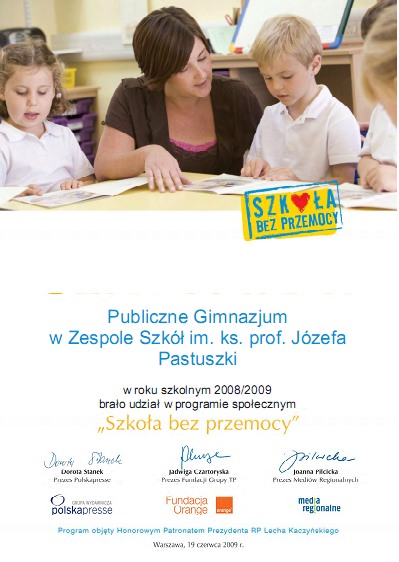 wyróżnienie, jesteśmy pierwszym gimnazjum w powiecie