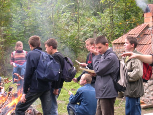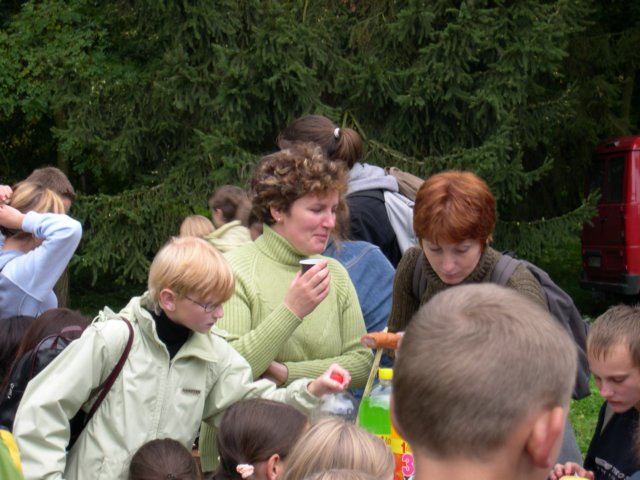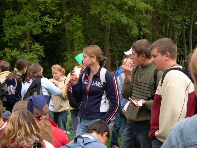 I tak po długiej, ale niezbyt męczącej drodze, dotarliśmy do celu - dworku Jana Kochanowskiego w Czarnolesie. Ku naszemu zdumieniu, zamiast wielbicieli talentu naszego pisarza, uduchowionych przyszłych poetów, zobaczyliśmy "kwiat młodzieży" - stadko wygłodniałych, pochłaniających ogromne ilości kiełbasy i ketchupu licealistów, którzy po odejściu (w trakcie odchodzenia kończyli jeszcze posiłek) od stołu pozostawili górę surowców wtórnych w postaci jednorazowych naczyń, niedojedzonej kiełbasy i rozlanych napojów. Jak miło popatrzeć na kulturalnych ludzi! - pomyślałem i zacząłem sprzątać miejsce konsumpcji.