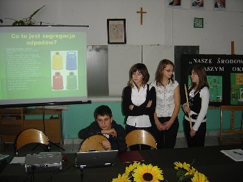 W klasie II wzięliśmy udział w projekcie „Chrońmy środowisko Pradoliny Wisły”. Co tydzień mięliśmy wykłady z profesorami Uniwersytetu Jagiellońskiego w Krakowie. Dowiedzieliśmy się wielu ciekawych rzeczy dotyczących naszego środowiska, zanieczyszczeń gleby, wody i powietrza. Na zakończenie projektu została zorganizowana debata, w której każdy z nas zaprezentował materiały jakie przygotował i w nagrodę otrzymaliśmy drobne upominki takie jak: długopisy, domino, koszulki i różne tym podobne gadżety. Oto kilka zdjęć z debaty: