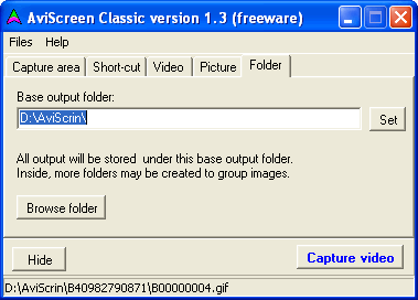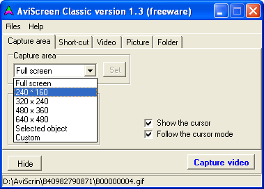 AviScreen Classic to darmowy program do tworzenia prezentacji z przechwyconego obrazu. Aplikacja umożliwia nagrywanie wybranego okna, zaznaczonego obszaru, całego ekranu, itd. Przydatną funkcją jest możliwość zaznaczenia lub odznaczenia opcji związanych z kursorem - użytkownik może wybrać czy chce aby kursor był widoczny.