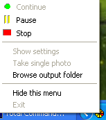 Panel sterowania nagrywaniem obrazu dostępny po kliknięciu na ikonę programu w zasobniku obok zegara.