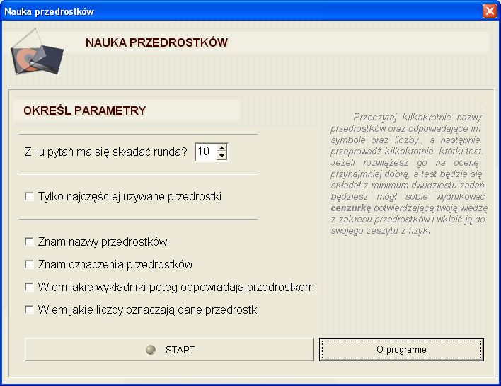 Program do nauki przedrostków i sprawdzania swojej wiedzy.